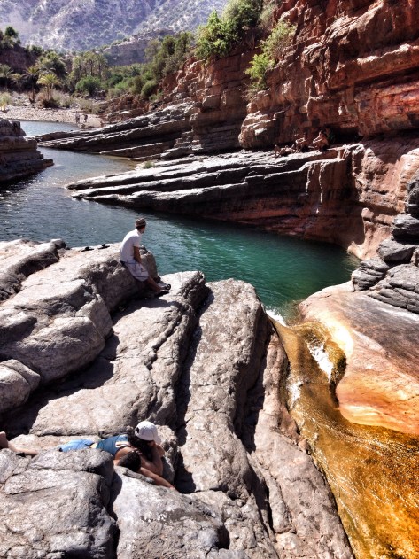 amtoudi, not mentioned in any history books and far off the beaten track, twenty ton of vehicles travel as high on curvy skinny routes as they could, having their drivers venture out hiking onto little traveled paths, to well preserved old granaries that served as a hiding and battling ground for rival tribes. with stunning views from below and above, baffled, they jumped in some  natural pools, hidden between perfectly shaped rocks, smoothed by millions of years of cascading water …. a cooling welcome to their heated bodies and overnighty on a dried river bed.