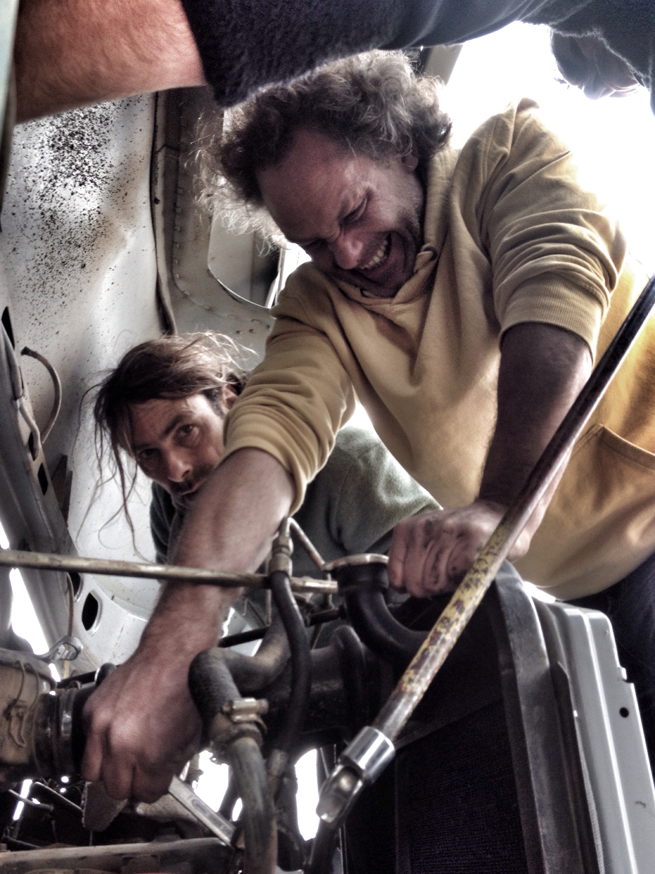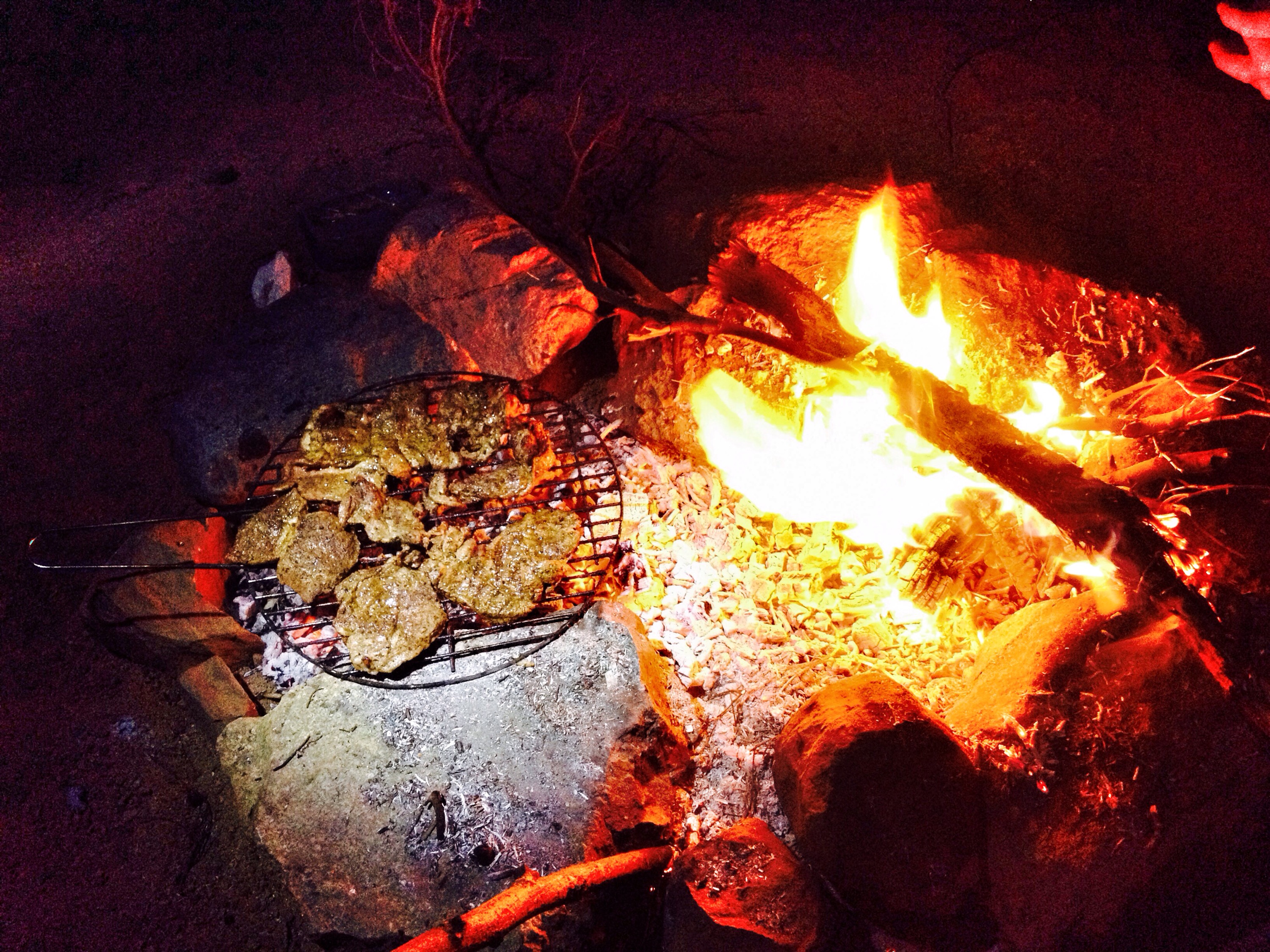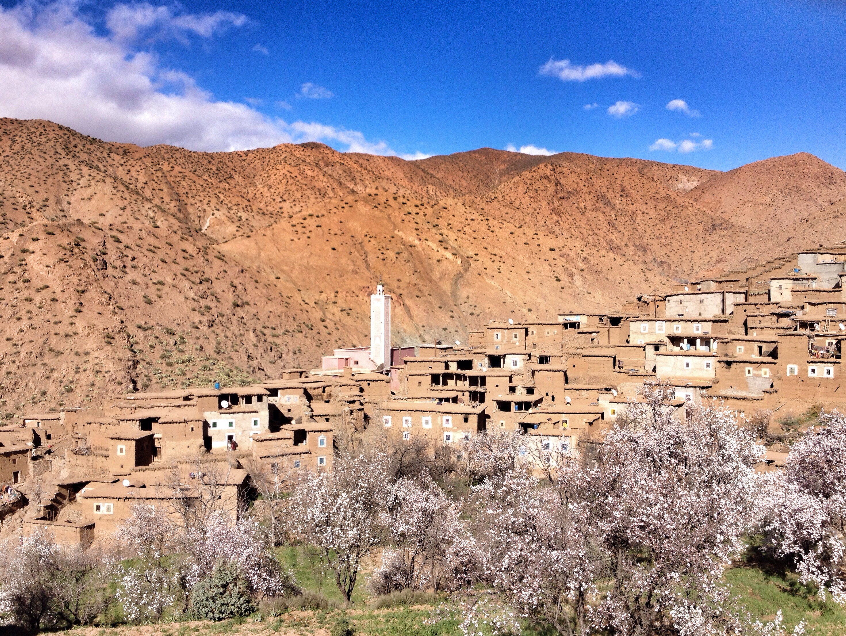 a pleasant easy journey, through majestic valleys, filling up our tank with freshest atlas water at a spring, we ventured off-road, into a garden eden, flanked by large cactus and rich blooming almond trees, towards anmid, when suddenly the soft red iron laden earth broke underneath our right back wheel towards an abyss. claas pulled truck and passengers out of that hole into safety. reaching the village, thirty something kids greeted and followed us back down and out of a road that was unfit for a ten ton four-wheeler. three adults walked beside, in front of and behind the vehicle to warn claas of skinny paths, rock walls to limit the damage. it was a true three hour adventure for us on a one kilometer stretch and we were the excitement of anmid. a campfire, soft tunes, well-deserved cold beer, perfect steak du boef with salad finished the grand day of little kilometers, yet memorable experience.