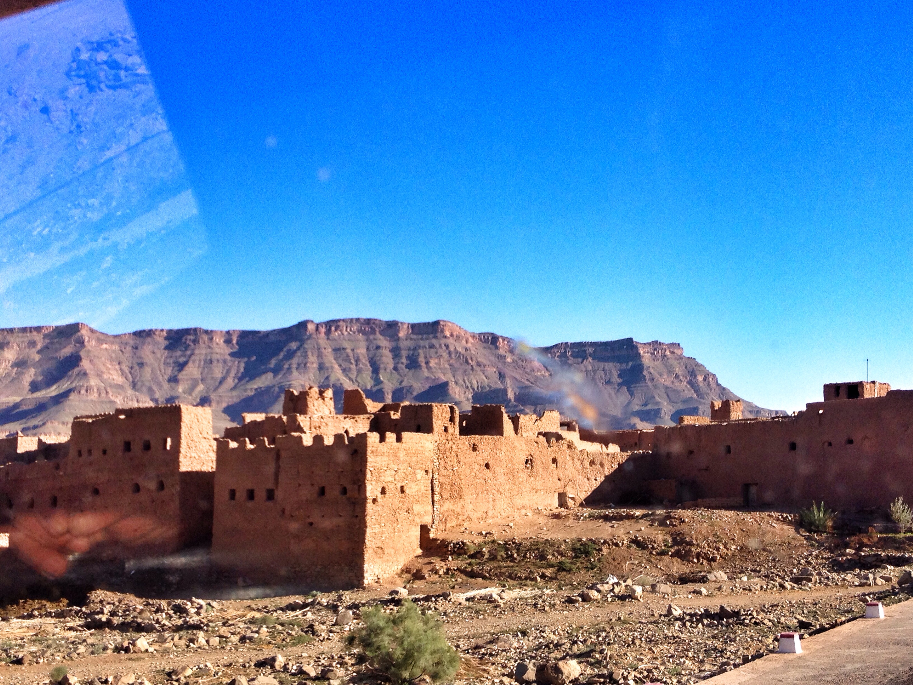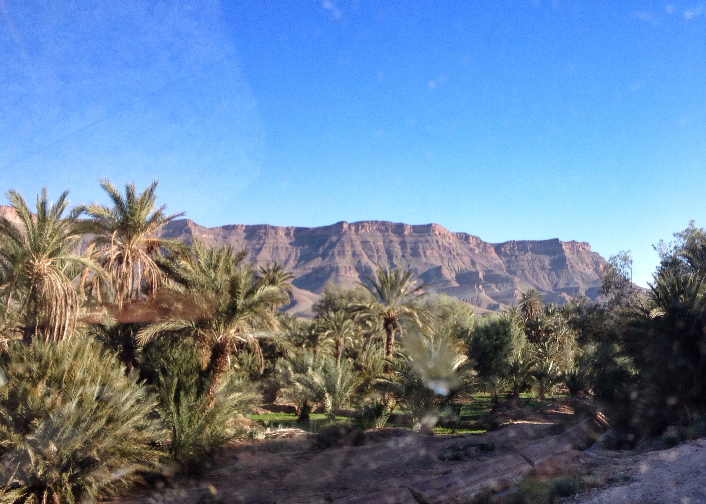 gliding through twohundredandfifty kilometers of vast anti atlas road from taliouine to zagora, blessed us with all shades and tones of soft red, orange, beige and grey. from flat land to soft hills, from rugged snow patched mountains to monoliths in the starting desert we are so looking forward to see. it was a lot of “nothingness”, beaucoup de rien. saturated oasis’, dense with palm trees, glistening rivers and humble dwellings made of mud in draa valley. red canyons and little villages passed by us on ever renewing endless roads. each curve made us eager to turn, curious for the next grand panoramic view we might expect behind it. never were we disappointed. oasis palmier at zagora greeted us with a carpet, pillows and short table at our truck. a whisky du berber, thé, our welcome drink under the sunsetting glow of the palm trees, finished off our journey of the day wonderfully