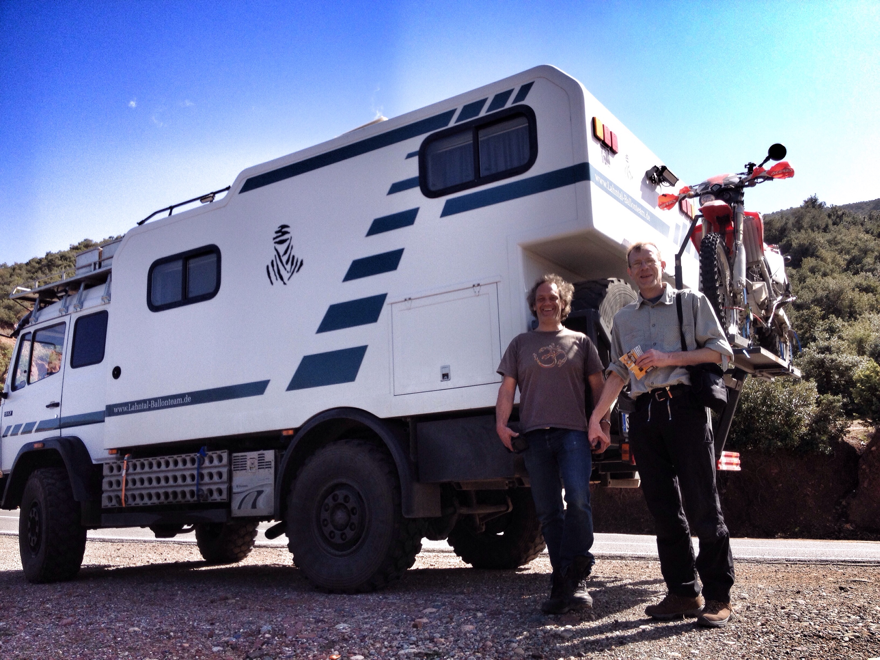 amtoudi, not mentioned in any history books and far off the beaten track, twenty ton of vehicles travel as high on curvy skinny routes as they could, having their drivers venture out hiking onto little traveled paths, to well preserved old granaries that served as a hiding and battling ground for rival tribes. with stunning views from below and above, baffled, they jumped in some natural pools, hidden between perfectly shaped rocks, smoothed by millions of years of cascading water …. a cooling welcome to their heated bodies and overnighty on a dried river bed.